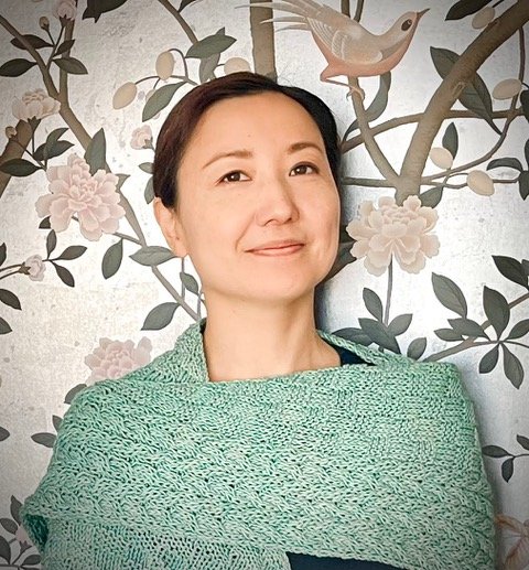 Materials: Flexible design adaptable to any yarn weight or yardage. Sample 1 This shawl can be worked in one color. A contrast color is optional and is used here only for the border. Yarn: DK weight yarn. MC: approx. 162 meters (177 yards), 81 g; CC: approx. 9 meters (10 yards), 3 g or as desired. Sample shown in MC: Garnstudio DROPS Karisma, color 37 Dark Grey Blue; CC: Scheepjes Scrumptious, color 314 Blue Glazed Doughnut. Needles: US 6 / 4.0 mm circular needles, at least 32” / 80 cm long (or size needed to obtain gauge). Sample 2 Yarn: Aran weight yarn, approx. 312.0 meters (341.2 yards) Sample shown in Create Aran by Yarnsmiths, (100% Acrylic, 195 meters / 100 grams) color: #4230 Teal Needles: US 8/ 5 mm circular needles, at least 32” / 80 cm long (or size needed to obtain gauge)
