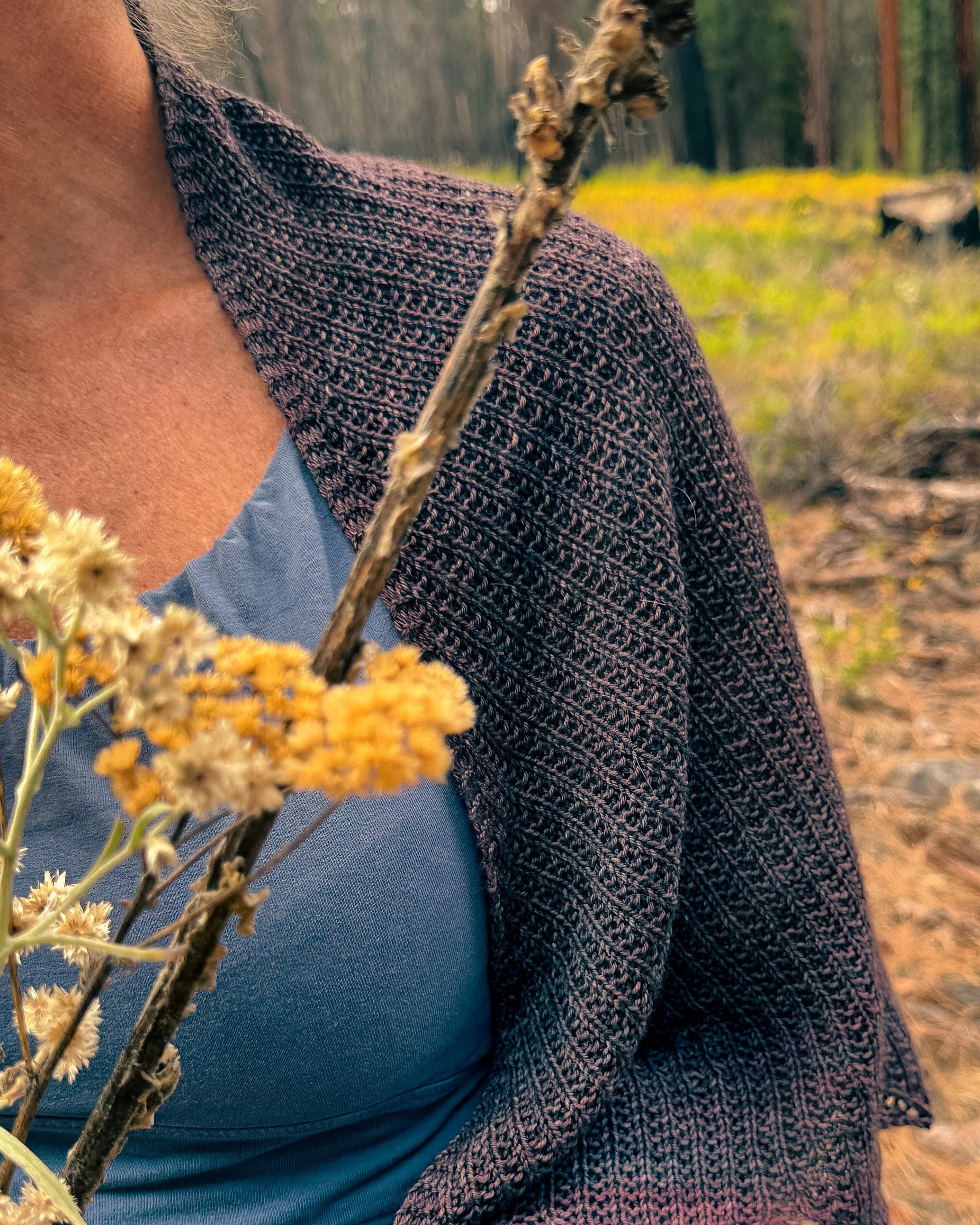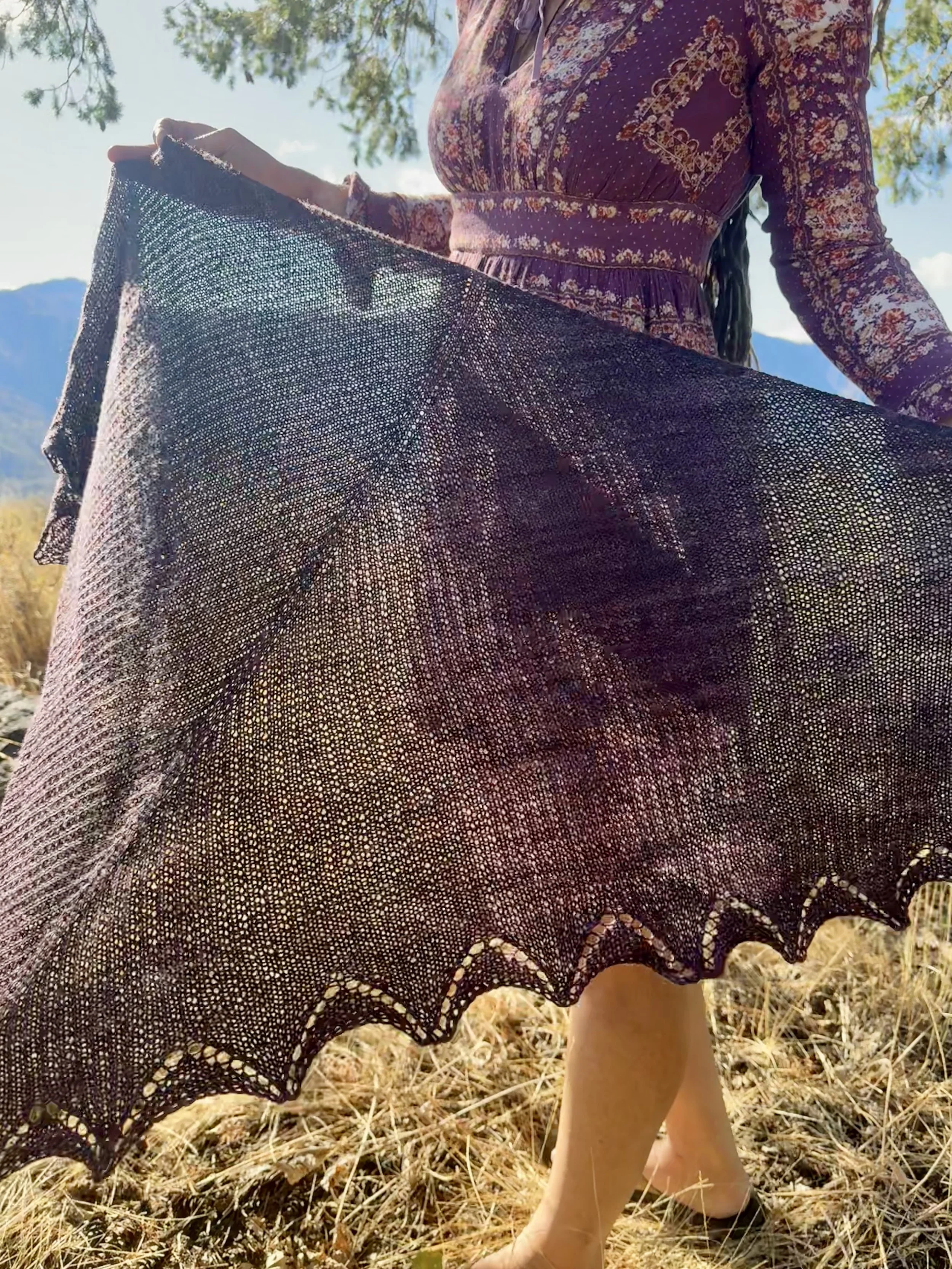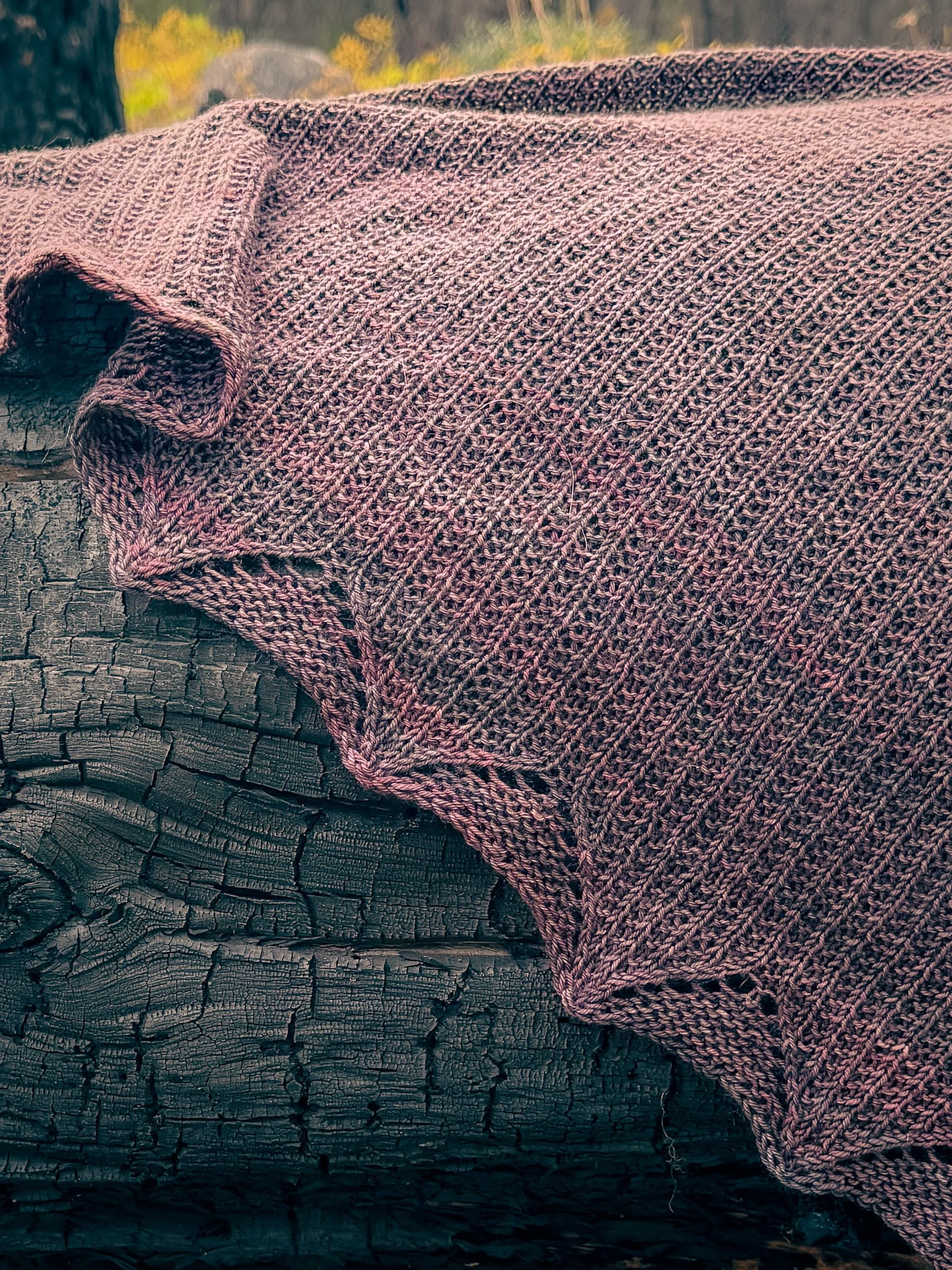 Simple broken rib texture that transitions seamlessly into lace, creating a beautiful canvas for hand-dyed yarn.
